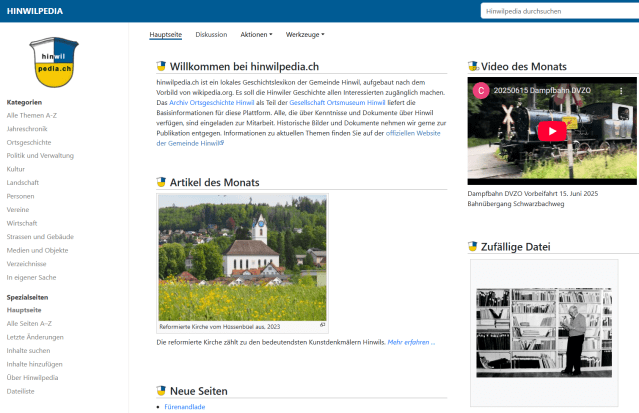 Seit September 2025 ist das ortsgeschichtliche Wiki hinwilpedia.ch zugänglich. Es wird durch eine Gruppe von rund 10 Personen gestaltet. Das Archiv Ortsgeschichte Hinwil bietet die Basis dafür.